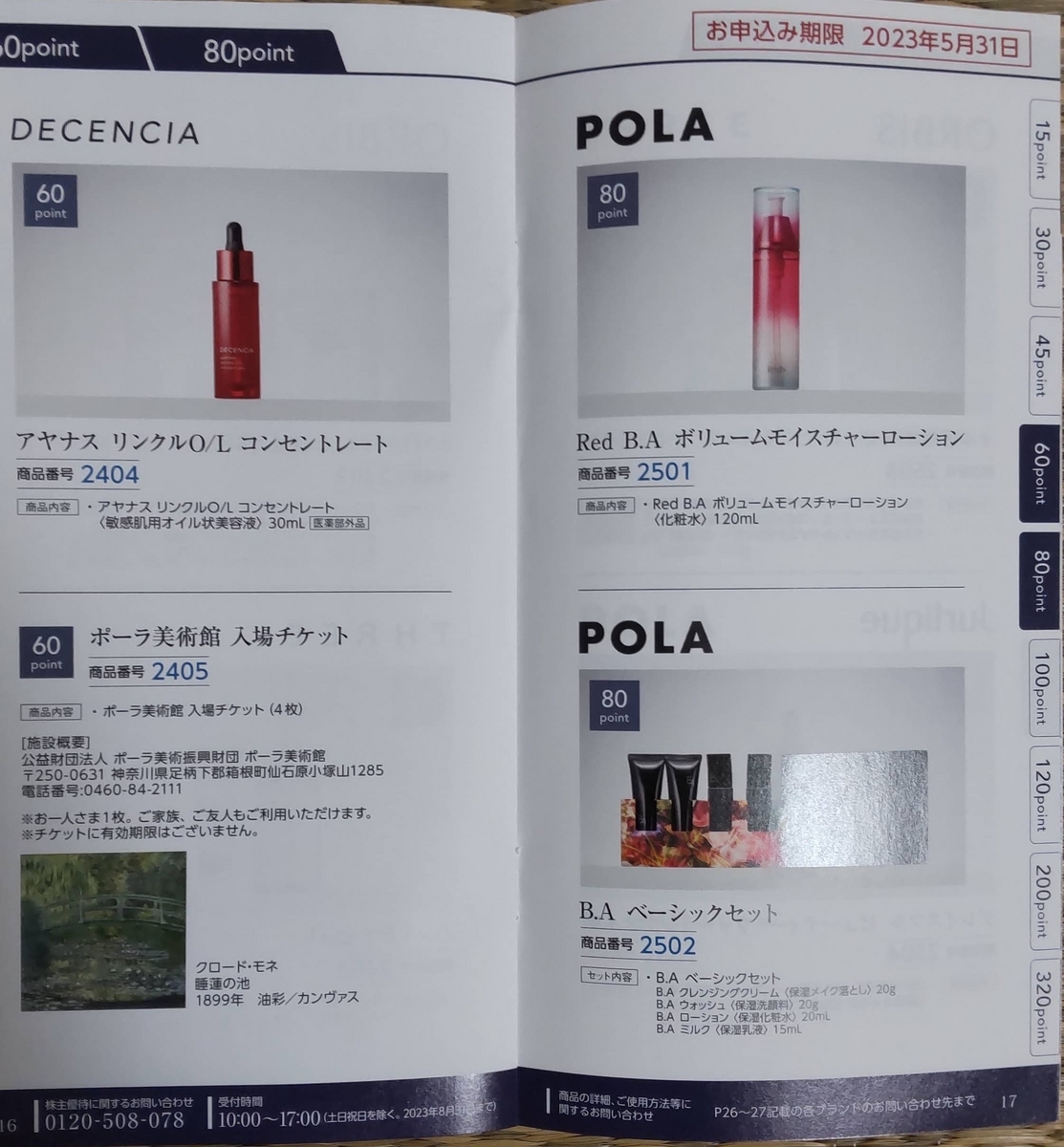 株式会社ポーラ・オルビスホールディングス [4927] から株主優待サービスのご案内をいただきました。(3月9日頃)